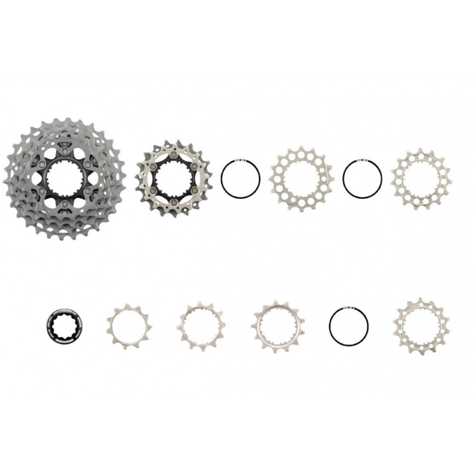 gradazioni: 11-12-13-14-15-16-17-19-21-24-27-30 denti 11-12-13-14-15-17-19-21-24-27-30-34 denti Specifiche tecniche: Materiale: alluminio, acciaio, titanio Tecnologia: Hyperglide+ Passaggi di marcia: 12 Gradazioni: 11-30 o 11-34 denti Gamma di ingranaggi: 254 - 309% Nucleo compatibile: Shimano 11-/ 12-speed Road Catena compatibile: Shimano CN-M9100 12 velocità, CN-M8100 12 velocità Colore: argento, grigio Peso secondo il produttore: 223g (11-30 denti), 253g (11-34 denti) Incluso: 1x pacco pignoni con anello di bloccaggio |