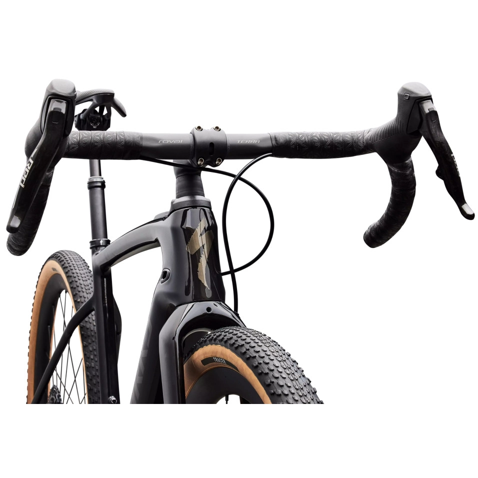 | Ruote Del: Roval Terra CLX II, 25mm internal width, Tubeless Ready, 32mm depth, 21h, Roval LF13 hub with ceramic SINC bearings, Centerlock disc, DT Swiss Aerolite spokes // Tras: Roval Terra CLX II, 25mm internal width, Tubeless Ready, 32mm depth, 24h, Roval... |