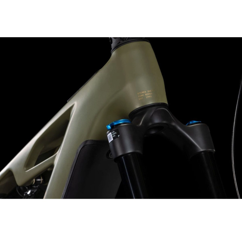 La bici Cube Stereo Hybrid ONE77 HPC TM 800 25 canalizza la potenza del motore Bosch CX e della batteria PowerTube attraverso la trasmissione Sram GX Eagle 1x12, per cambi di marcia senza sforzo e un'incredibile precisione elettronica. Combina una forcella Fox Float 38 Performance Grip con un ammortizzatore Float X2 Performance. Insieme, forniscono 170 mm di escursione (con numerose opzioni di regolazione) per aiutare a mantenere la gomma incollata al terreno. Parlando di gomma, il set di ruote Newmen Beskar 30 mullet è calzato con i robusti e appiccicosi pneumatici Magic Mary e Tacky Tan da 2,4 pollici di Schwalbe .