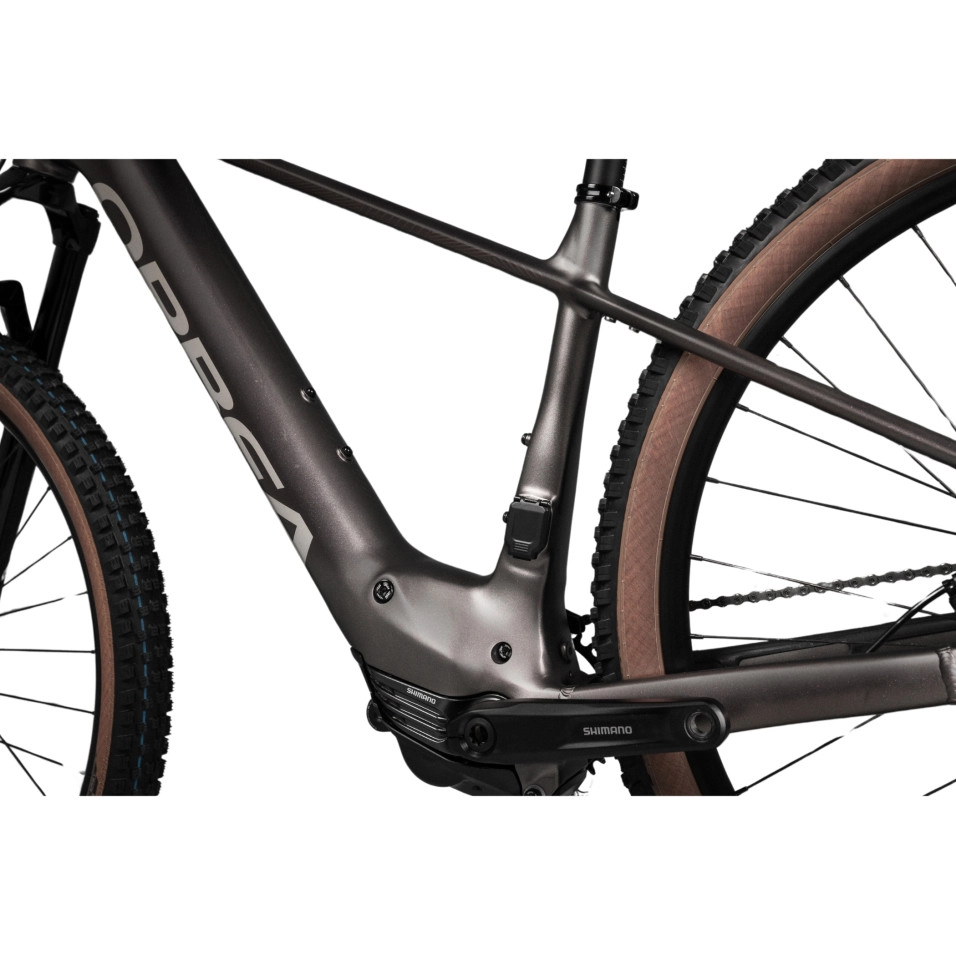 RS Gen 2 MC Urrun utilizza lo stesso sistema Shimano EP8 RS Gen 2 MC sviluppato per l' Orbea RISE 2025. Questo attento equilibrio tra semplicità, potenza e leggerezza, fornisce l'assistenza più naturale ed elastica, con cui affrontare le più grandi avventure con un'autonomia senza rivali. Nuova sinergia tra ciclisti Una moto, due personalità. Urrun offre nuovi modi di andare in bicicletta, adattandosi perfettamente alle lunghe avventure o alle brevi e veloci uscite. Modalità RS: Con la modalità RS il motore fornisce l'assistenza più elastica e offre la massima autonomia. Perfetto per affrontare lunghe avventure. Modalità RS+: un po' più di assistenza può sembrare più naturale sulle salite tecniche, a una cadenza inferiore o quando hai bisogno di un po' più di slancio. RS+ è per queste occasioni, aumentando l'assistenza fino ad un massimo di 85 Nm. 630 Wh garantiscono la massima autonomia Orbea ha sviluppato la propria batteria da 630 Wh utilizzando celle di ultima generazione. Il risultato è più energia per grammo rispetto a qualsiasi altra batteria attualmente disponibile sul mercato. Immagazzinare più energia in uno spazio più piccolo e leggero è la chiave per le e-bike leggere. Forcella da 120mm Urrun è progettato attorno a una forcella con escursione da 120 mm. La sua geometria è stata attentamente studiata per massimizzare il controllo e ottenere una bici divertente e facile da manovrare per chiunque. Alluminio perfettamente lucidato Ogni saldatura sul triangolo principale è lucidata, ricordando l'aspetto di un telaio monoscocca. Adattatore accessorio esclusivo Urrun include il kit di montaggio personalizzato, un accessorio che semplifica il montaggio di portapacchi e parafanghi. Può anche essere completamente smontato per garantire un aspetto più pulito quando non viene utilizzato. |