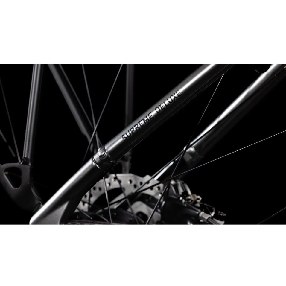 Escapa offre ai ciclisti urbani la bicicletta Cube Supreme Hybrid Deluxe ONE 625 Easy Entry 25 , che combina tecnologie all'avanguardia per un'esperienza di guida urbana. Il motore Bosch , la batteria integrata e la trasmissione a cinghia Gates forniscono un'assistenza elettrica intuitiva ed efficiente. La forcella ammortizzata e i freni a disco idraulici completano il pacchetto tecnologico di questa e-bike.