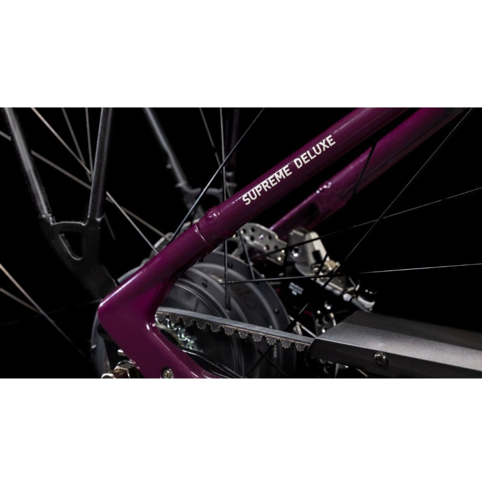 Escapa porta ai ciclisti urbani la bicicletta Cube Supreme Hybrid Deluxe Pro 625 Easy Entry 25 , una e-bike progettata per la città e non solo. Con il telaio a scavalco basso, il motore Bosch Performance Line CX e la batteria da 625 Wh, offre un'assistenza potente e fluida. La trasmissione a cinghia Gates garantisce una pedalata silenziosa e quasi esente da manutenzione. I suoi componenti di alta qualità, come la forcella ammortizzata e i freni a disco idraulici, completano un pacchetto progettato per comfort e prestazioni.