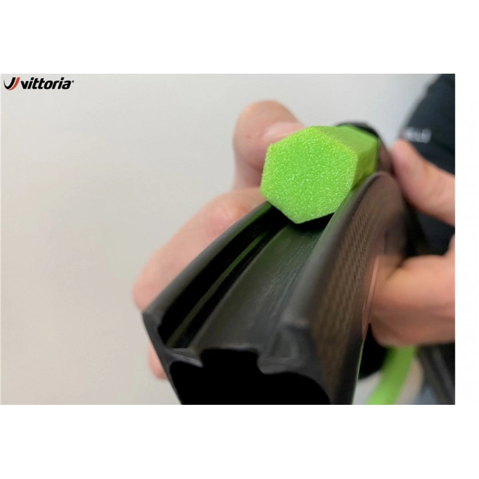 Il sistema Antiforatura Vittoria Air-Liner Road fornisce un'ammortizzazione contro le buche e una protezione dagli urti senza pari, garantendo al contempo il bloccaggio del tallone a pressioni più basse. In caso di perdita d'aria, il sistema Vittoria Air-Liner Road è progettato per l'utilizzo run-flat, cioè un sistema antiforatura che controlla la pressione per riportarti a casa. Il Air-Liner Road aumenta la sicurezza dei pneumatici tubeless-ready regolando il cerchio del pneumatico al cerchio del cerchione, riducendo la possibilità di sgonfiaggio. Realizzato specificamente per l'uso con pneumatici da strada senza camera d'aria, il sistema Vittoria Air-Liner Road è compatibile con tutti i pneumatici da strada tubeless disponibili sul mercato e offrirà gli stessi vantaggi indipendentemente dal marchio. Il materiale leggero non assorbe il sigillante, garantendo che le forature vengano normalmente sigillate, prolungando la durata dell'inserto. La valvola tubeless brevettata da Vittoria utilizza più fori di grandi dimensioni per far entrare l'aria nel pneumatico, eliminando il blocco della valvola e garantendo facilità d'uso durante la regolazione della pressione dell'aria. |