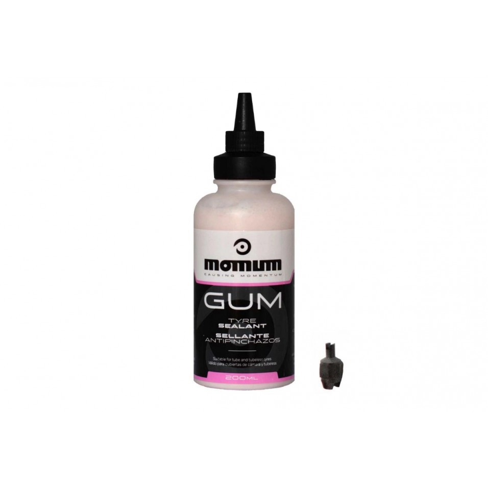 Il Liquido Sigillante Momum Gum 200ml ha le dimensioni ideali quando si tratta di cambiare le gomme della nostra mountain bike. Questo formato da 200ml è consigliato per due ruote da MTB o per sigillare diverse gomme da strada. Viene fornito con un tappo che consente di rimuovere il tappo della valvola.
